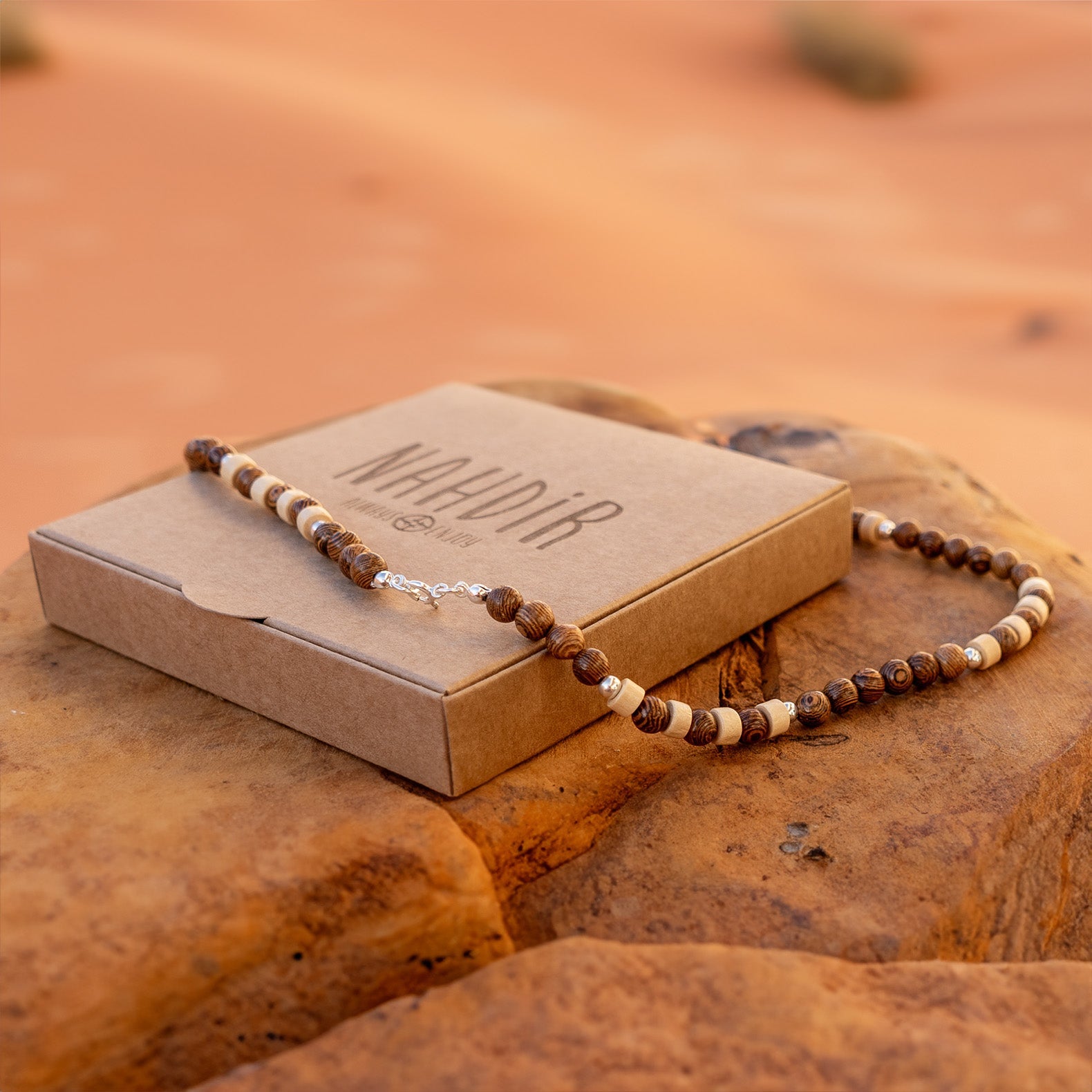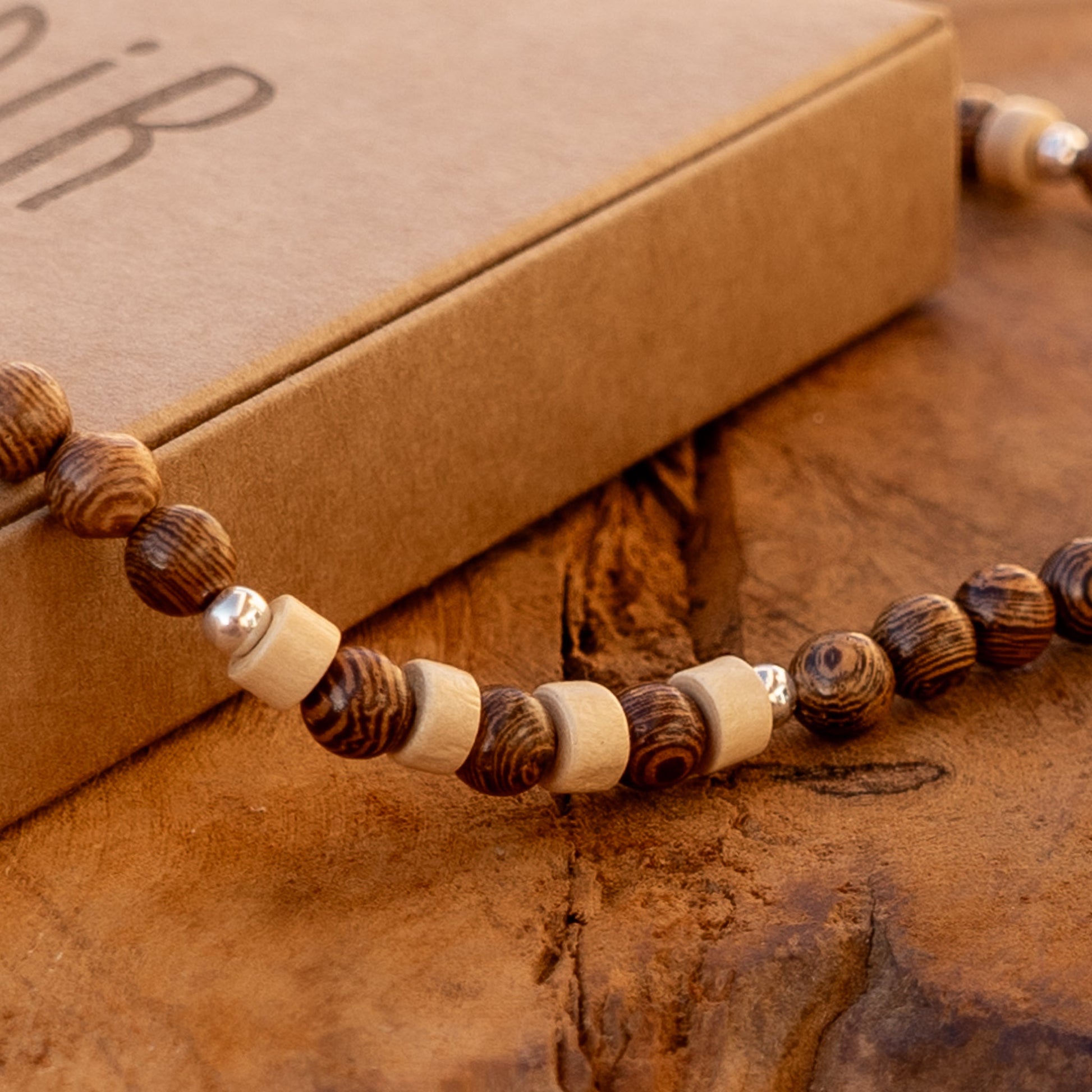 Usamos maderas nobles, piedras naturales y cordones resistentes, seleccionados uno a uno para respetar tanto tu piel como al planeta.