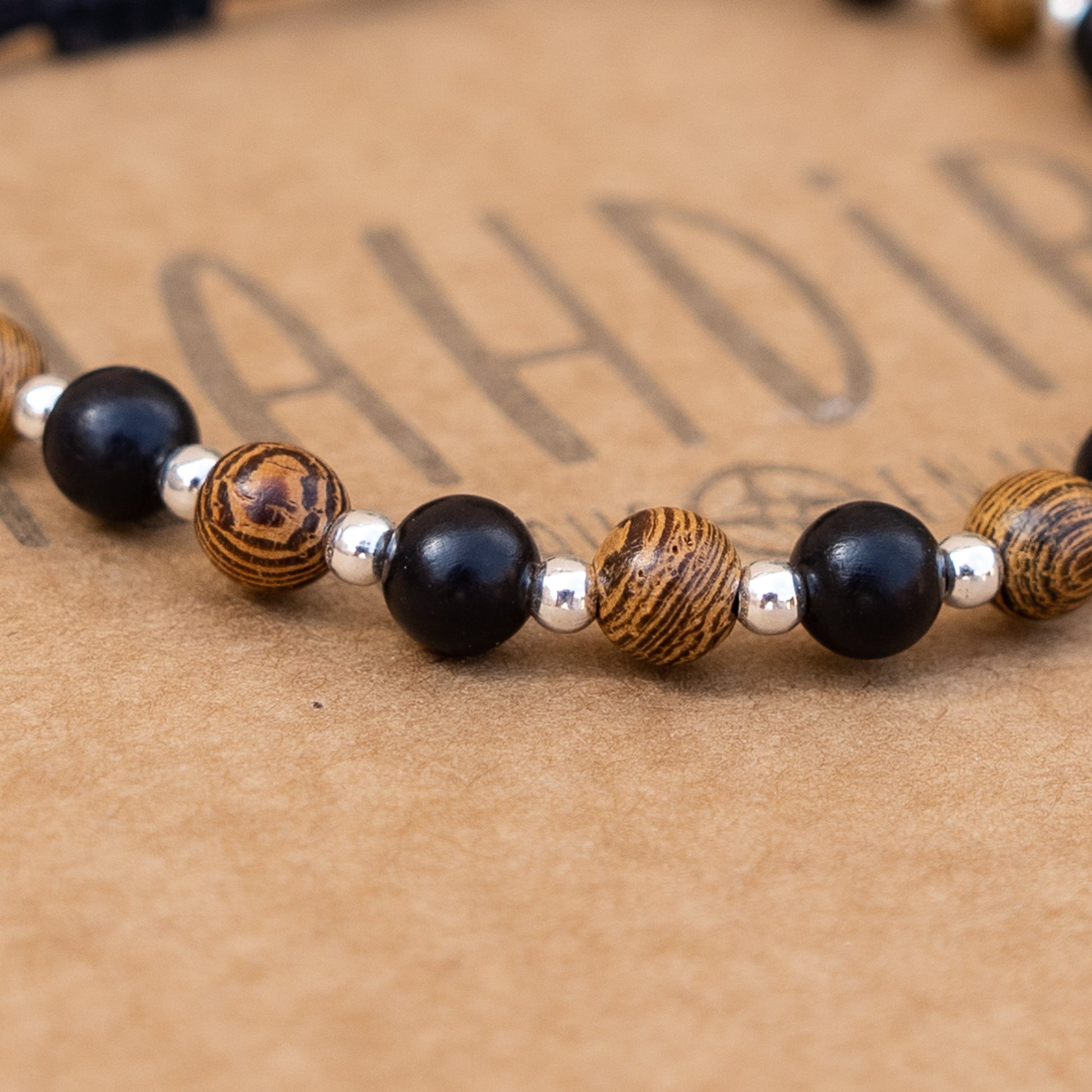 Nuestra pulsera Madagascar es un tesoro inspirado en la isla más grande del Océano Índico. Su diseño artesanal combina la madera de ébano, la madera de wengué y la plata 925, creando un impacto visual irresistible. La madera de ébano es conocida por su resistencia y durabilidad, lo que asegura que esta pulsera será un complemento duradero para tus aventuras.