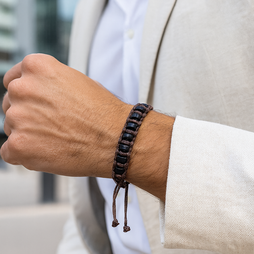 Usamos maderas nobles, piedras naturales y cordones resistentes, seleccionados uno a uno para respetar tanto tu piel como al planeta.