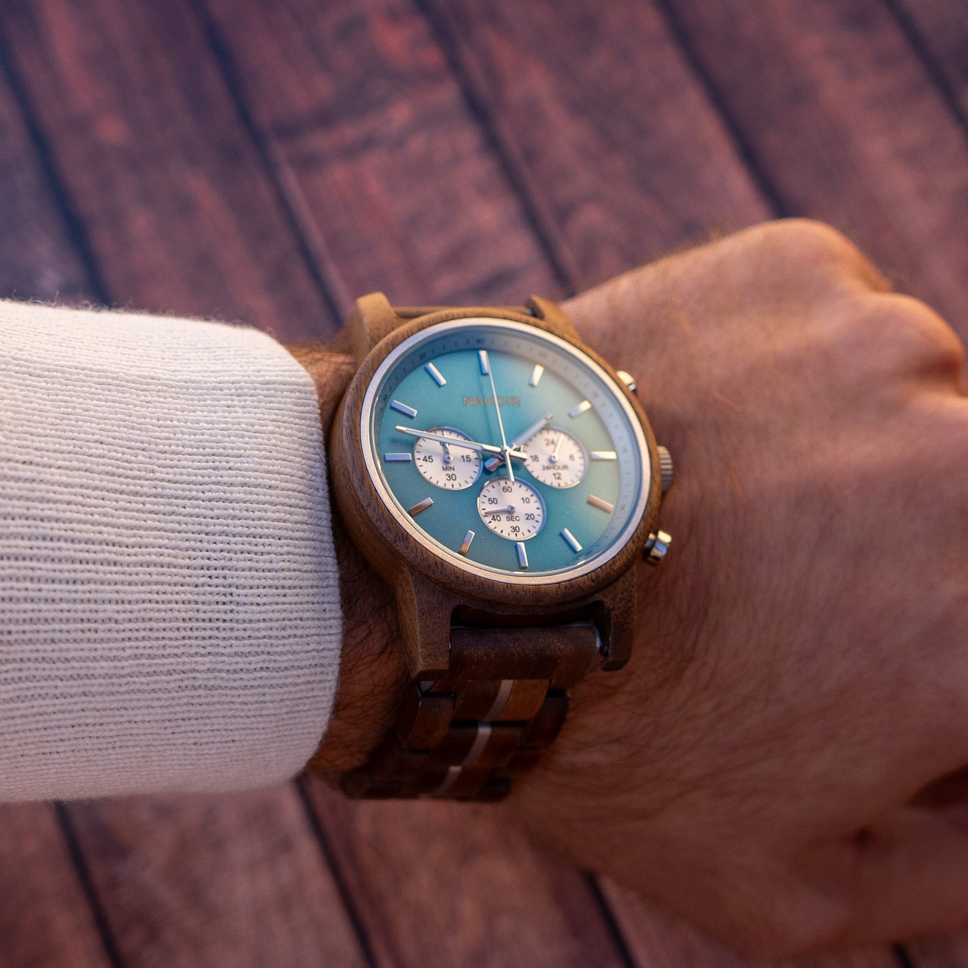 Nuestros relojes están meticulosamente tallados a mano utilizando solo madera seleccionada de fuentes sostenibles.